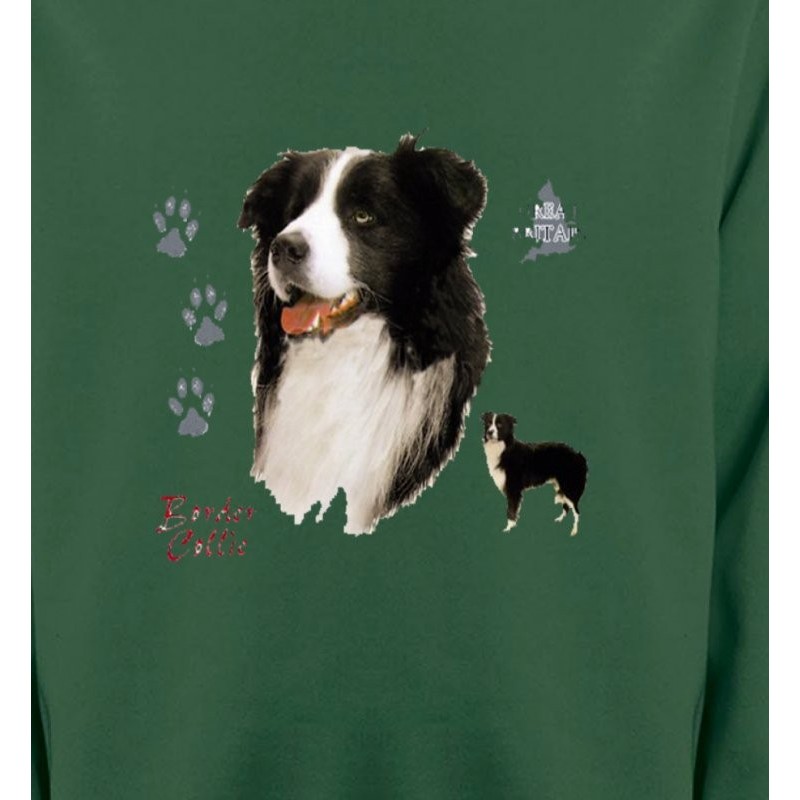 T-shirt ou sweatshirt illustration face et profil avec mention Border Collie, empreintes et silhouette de la France sur pandalook.com (possibilité de répartir les éléments de l'illustration où vous le souhaitez sur le support, à préciser lors de votre commande)