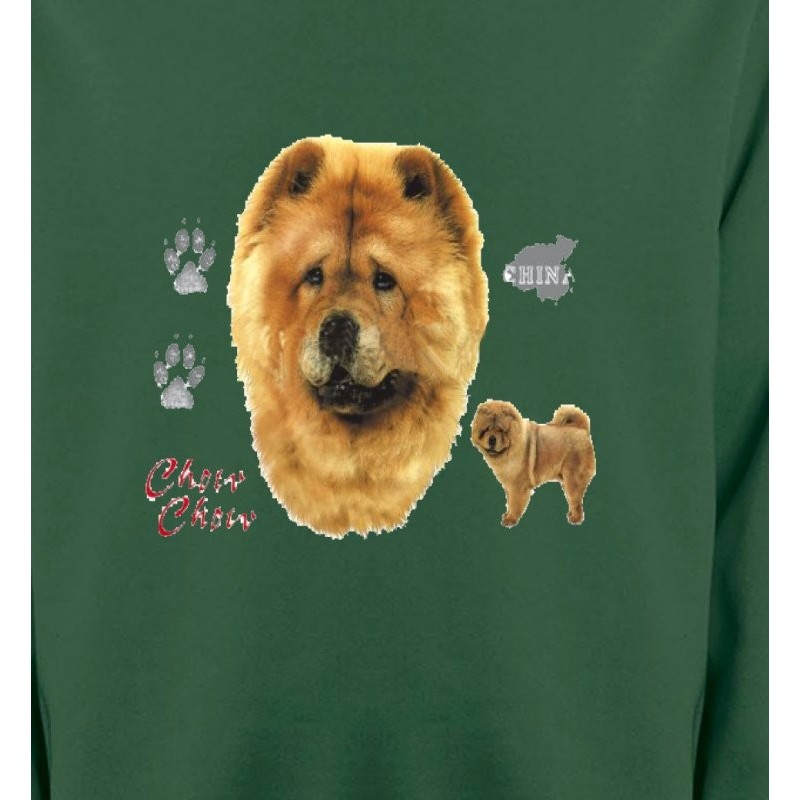 Illustration d'un Chow Chow couleur miel face et profil avec mention Chow Chow, empreintes et silhouette de la Chine sur pandalook.com (possibilité de répartir les éléments de l'illustration où vous le souhaitez sur le support, à préciser lors de votre commande)