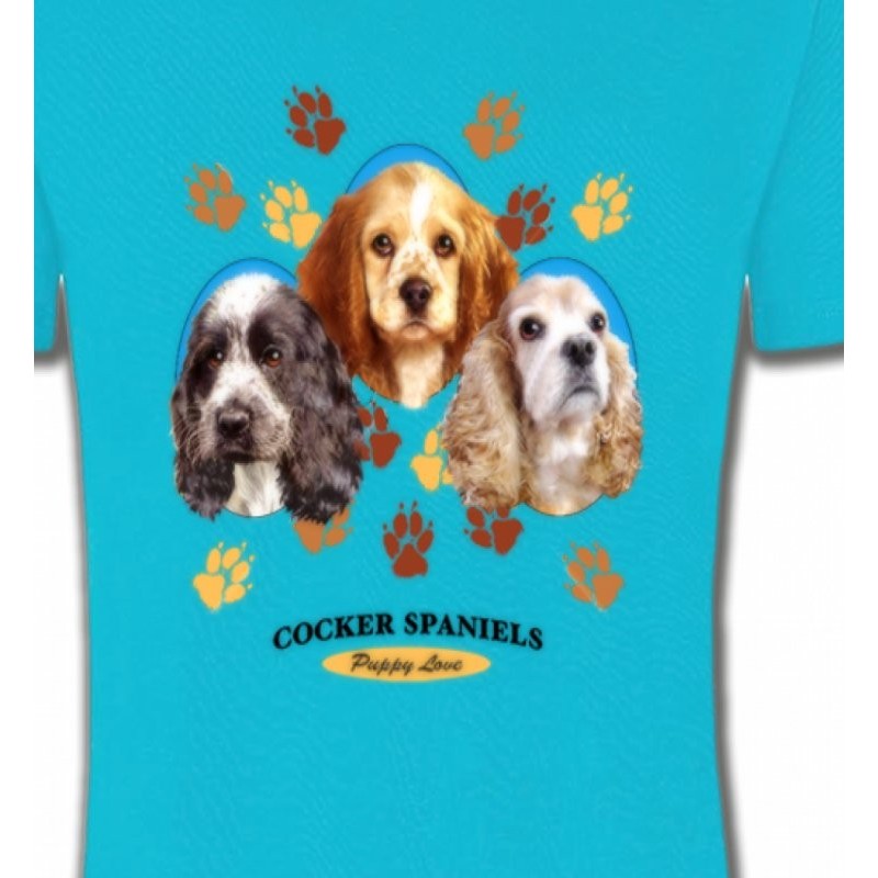 Illustration 3 visages de cocker avec mention "Cocker spaniel" et empreintes de pas sur pandalook.com