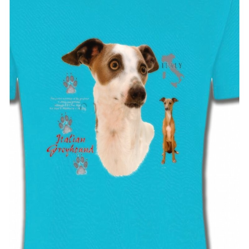 T-shirt ou sweat Shirt illustration face et profil avec mention Levrier Italien, empreintes et silhouette de l'Italie sur pandalook.com (possibilité de répartir les éléments de l'illustration où vous le souhaitez sur le support, à préciser lors de votre commande)